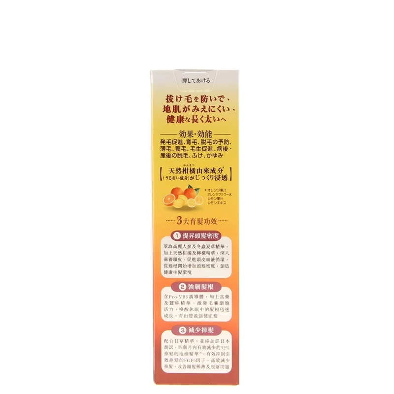 The extracts of Korean ginseng, peony and cordyceps can promote blood circulation in the scalp and increase hair density; add natural citrus and lemon extracts to nourish the scalp, create a healthy hair growth environment, and restore thick hair.