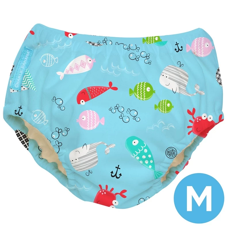 All Charlie Banana 2-in-1 Reusable Swim & Training Pants are expertly designed to minimize accidents at the beach, in the pool, or while potty training. Wide back elastic deliver a snug and comfortable fit for your baby. Made with super soft organic cotton inner lining and a multi-layer inner terry pad for added absorption.