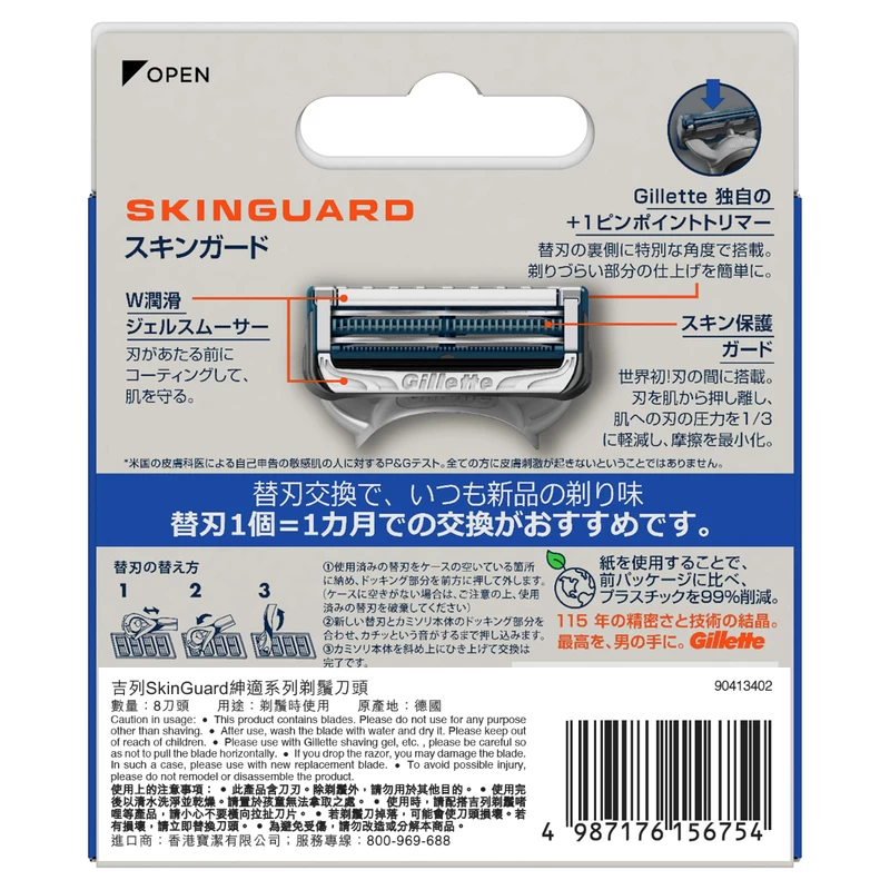 The unique skinguard system is placed between the blades and absorbs pressure, flatten the skin and lifts the blades to cut hair at the skin to help prevent irritation while providing noticeable relief.
