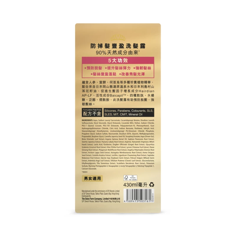 Containing a variety of precious plant extracts such as ginseng, angelica, and He Shou bird, together with Yuhara hot spring water from Okayama Prefecture, Japan, and camellia seed oil from Lidaomura, Japan, Hairdian AP-LF, a hair growth ingredient, Baicapilâ„¢, and four peptides, this hair growth essence helps prevent hair loss and promote hair growth, with a light texture, non-greasy, and fast absorption.