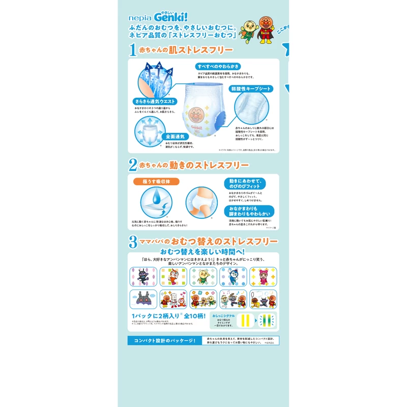 With exceptional quality backed by solid research about babies bottoms, nepia Genki! is able to respond to thte baby’s “Genki!” as well as answer the overflowing feelings of mum and dad. “Genki!” babies will bring forth a “Genki!” nation!