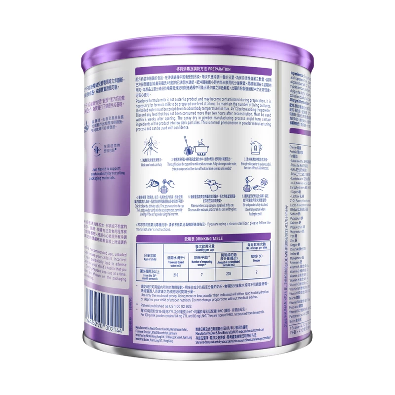 pHF-W: Utilize 100% Whey Protein and undergo Nestle’s Unique Hydrolysis technlogy to lower cow milk protein’s allergenicity and making it easy-to-digest.