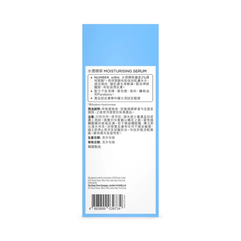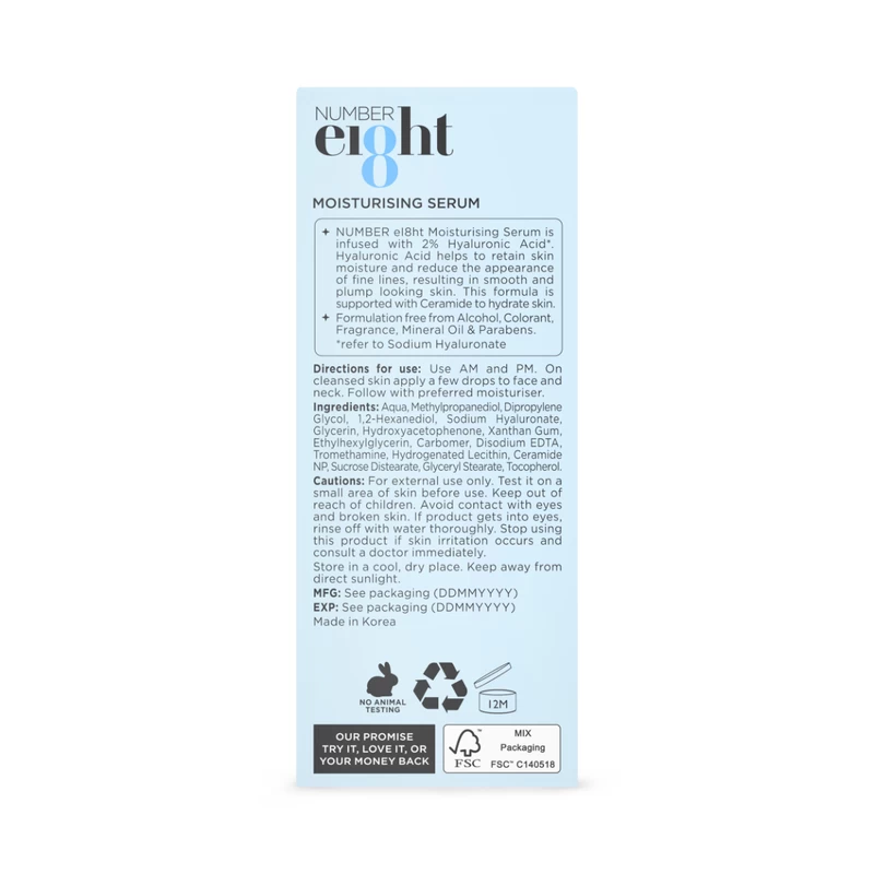 Infused with 2% Hyaluronic Acid*. *Refer to Sodium Hyaluronate. Hyaluronic Acid helps to retain skin moisture and reduce the appearance of fine lines. Ceramide helps to hydrate skin. Formulation free from Alcohol, Colorant, Fragrance, Mineral Oil & Parabens.